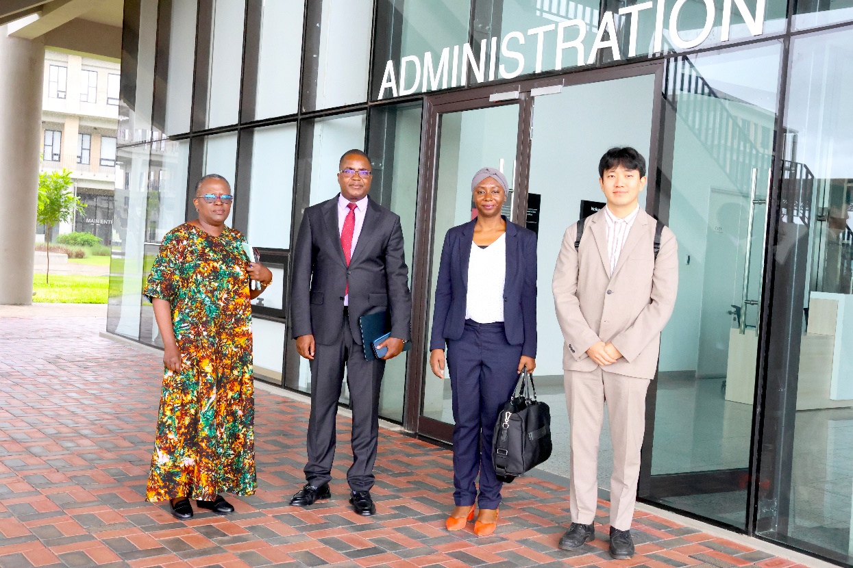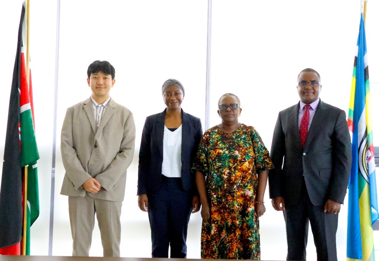 Kenya-AIST hosts introductory meeting with Global Green Growth Institute (GGGI-Kenya). (from right) Kenya-AIST Council Chairman, Prof. Emmanuel Mutisya, Kenya-AIST Ag. Principal, Prof. J.W. Khamasi, Ms. Nagnouma Kone (Head of GGGI-Kenya) and Mr. Suhyeon Kang (JPO – Program Development, GGGI)
