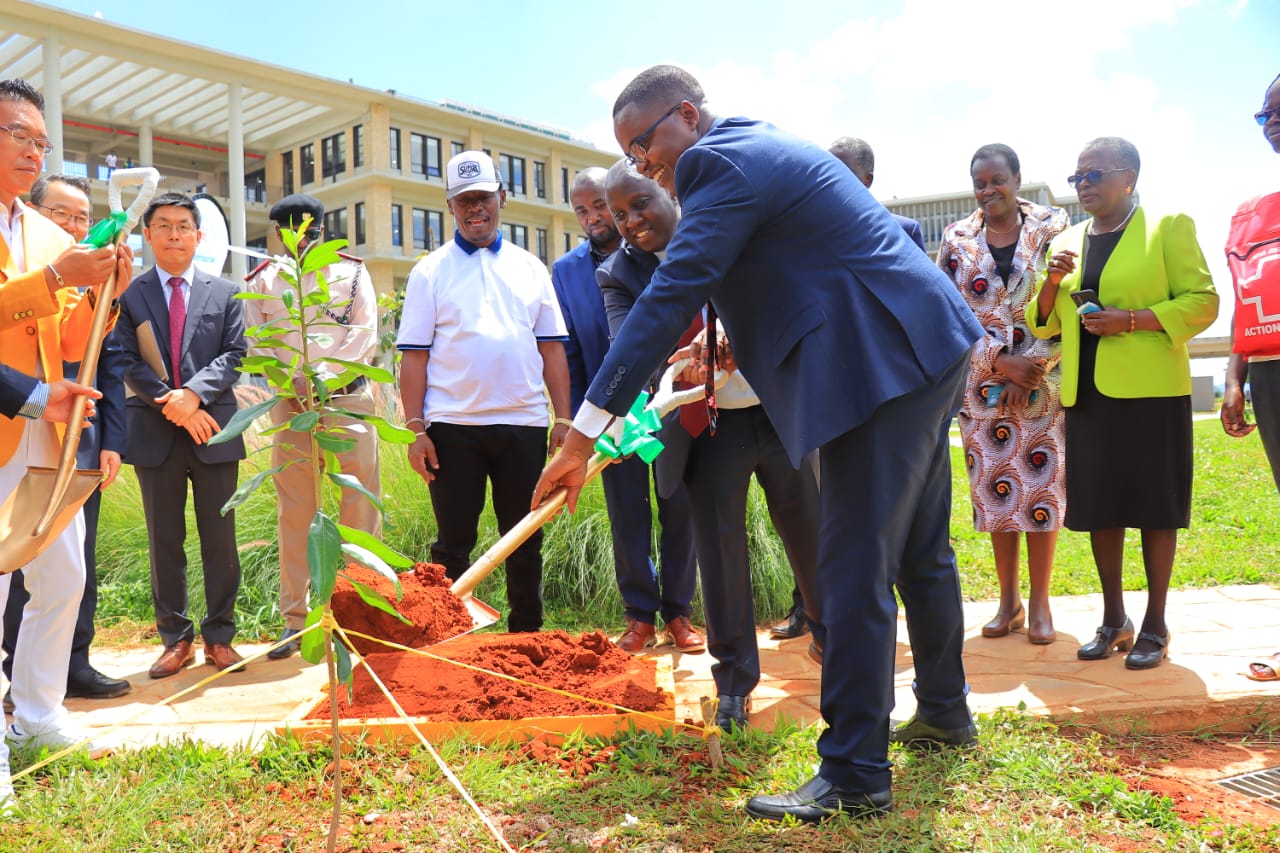 Kenya-AIST Council Chairman Prof. Emmanuel Mutisya and PS, Eng. John Tanui plant a commemorative tree during the Celebration of Completion event in April 2025