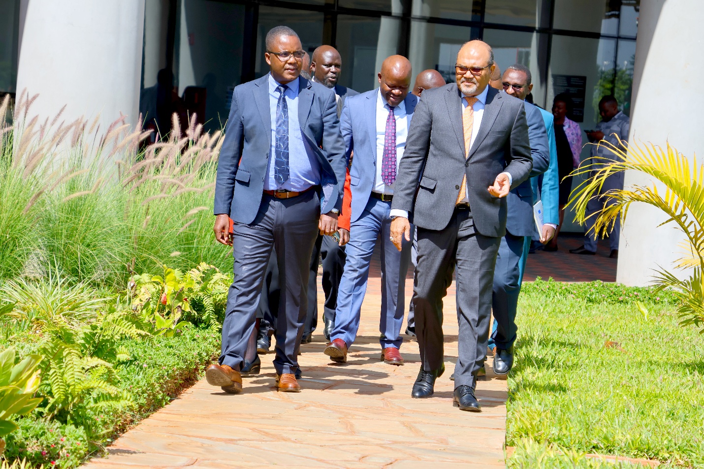 Principal Secretary, Prof. Shaukat Abdulrazak is received by Council Chairman, Prof. Emmanuel Mutisya and Ag. Principal, Prof. J.W. Khamasi for a high-level engagement session.